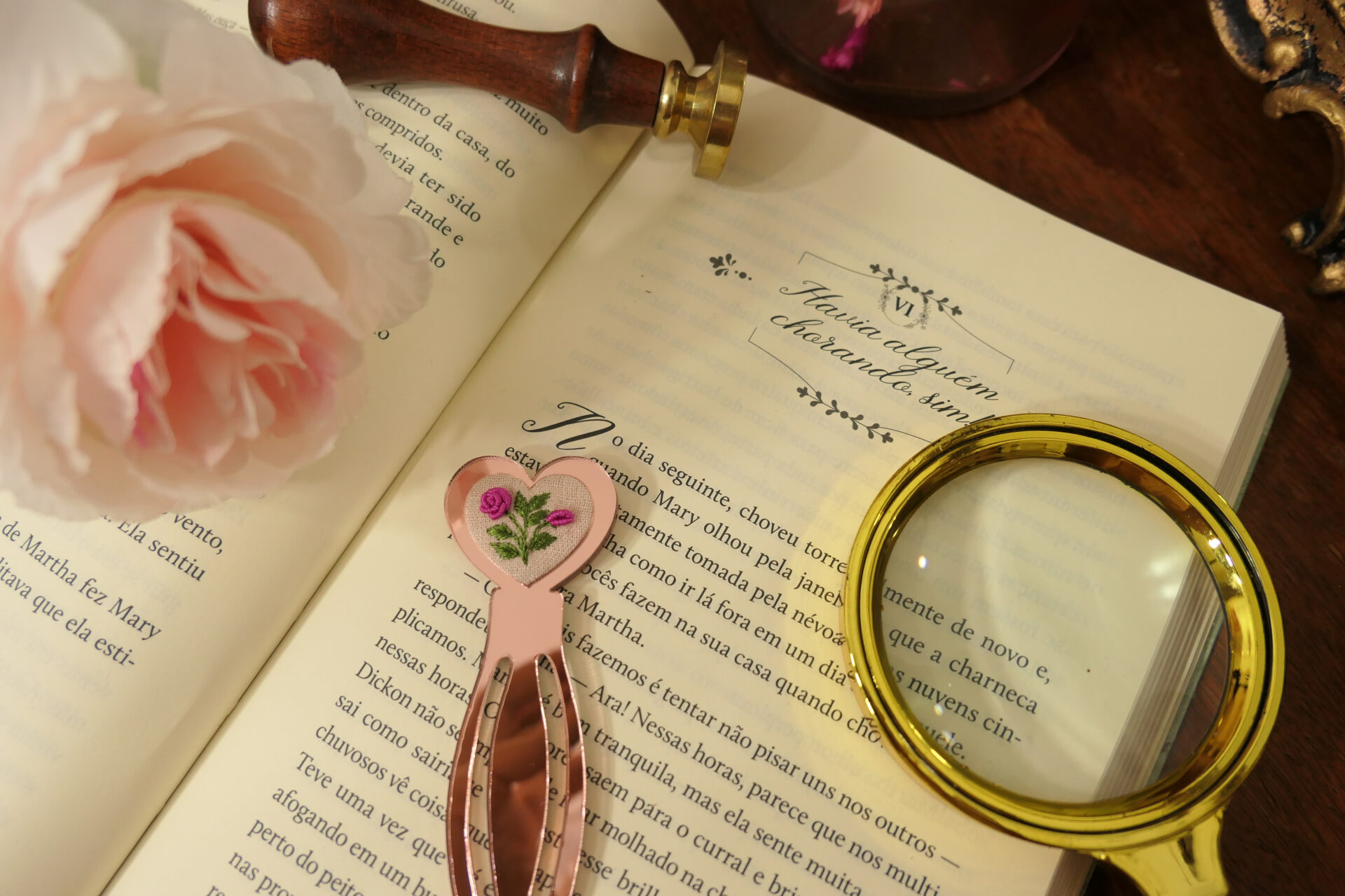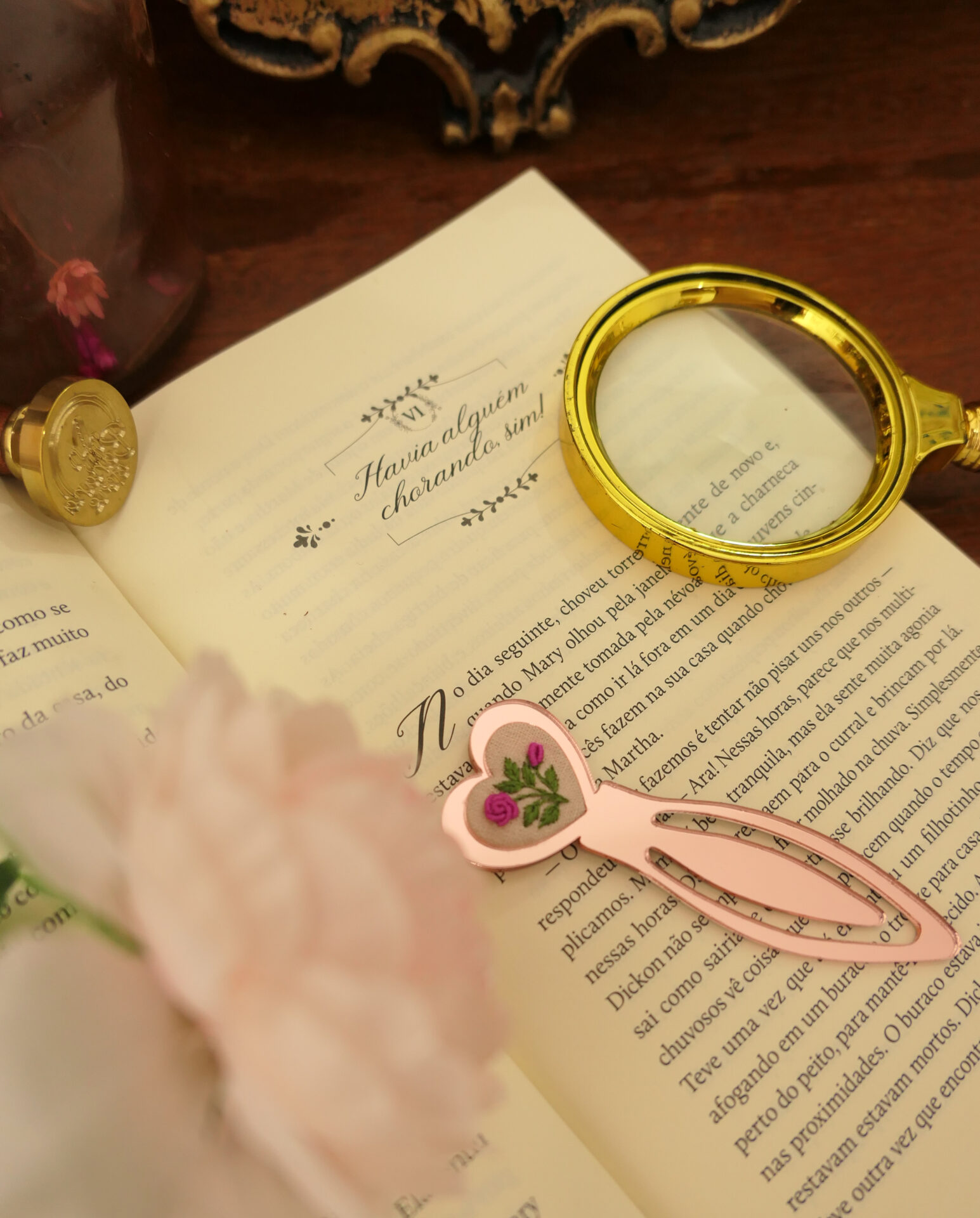 Esse delicado marcador de página está pronto para fazer parte do seu momento de leitura repleto de suavidade.