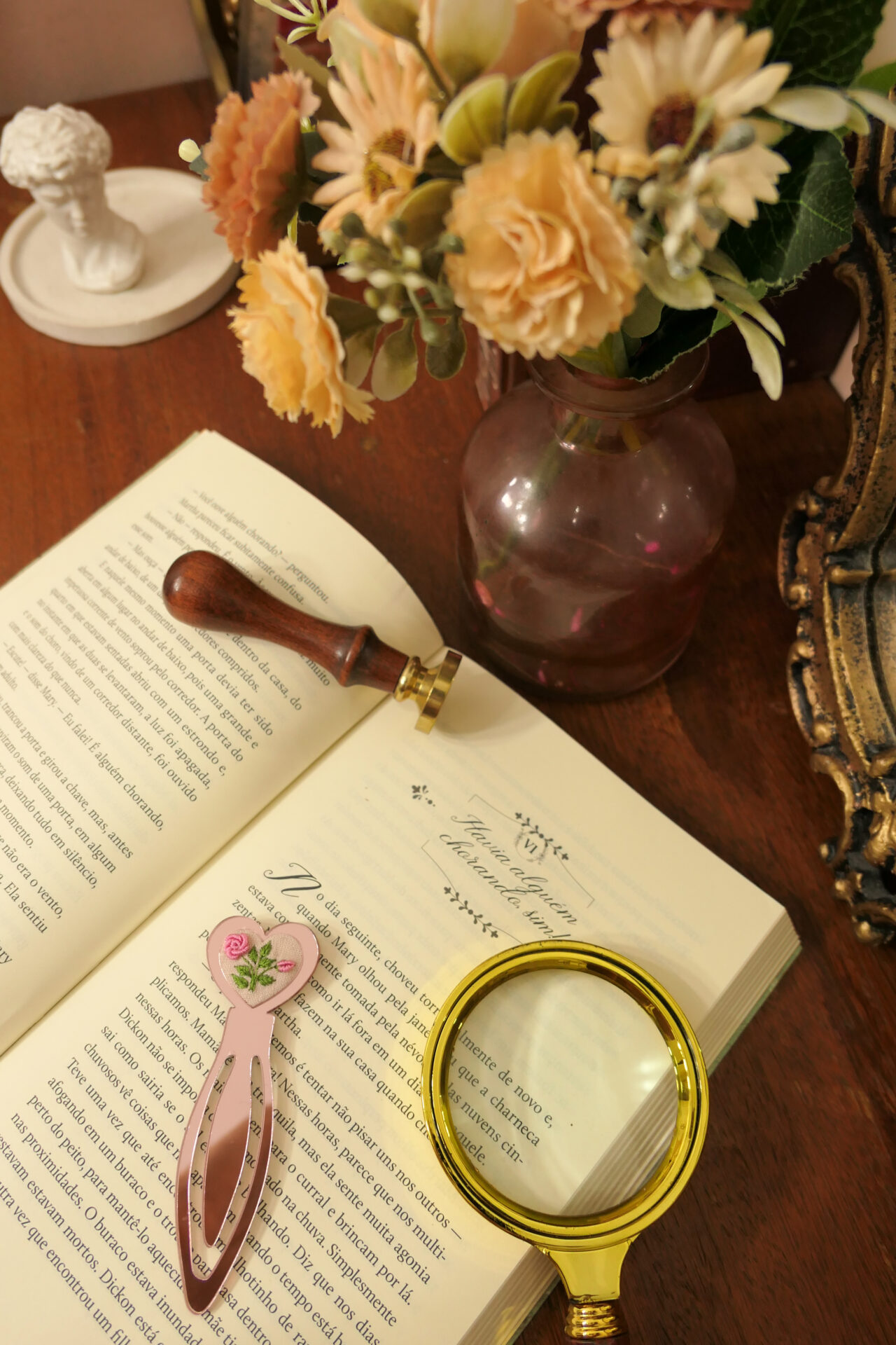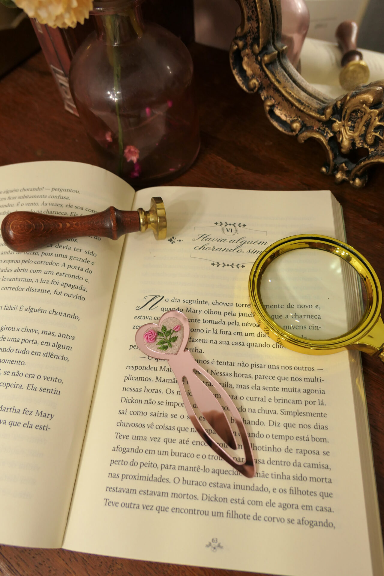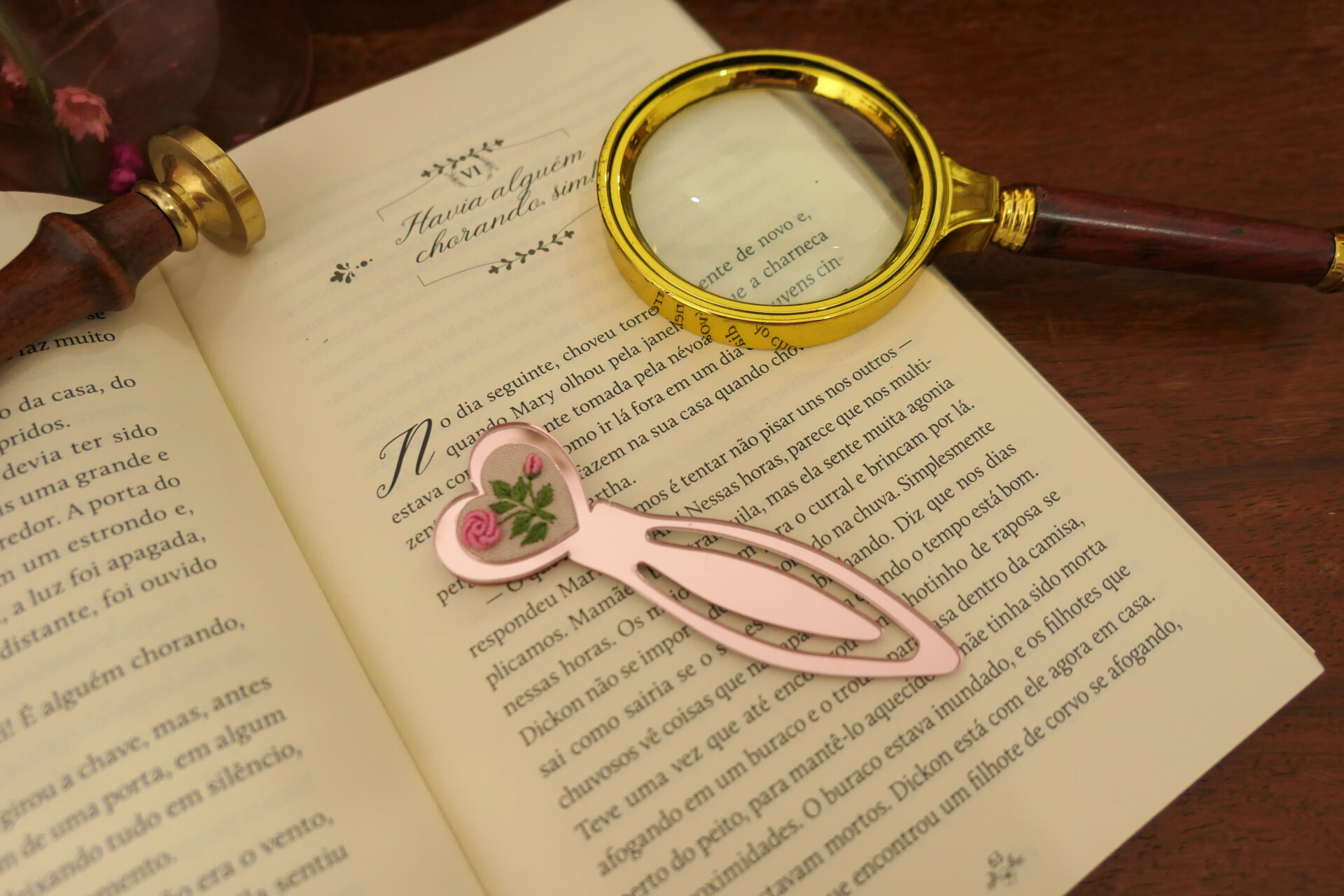 Esse delicado marcador de página está pronto para fazer parte do seu momento de leitura repleto de suavidade.